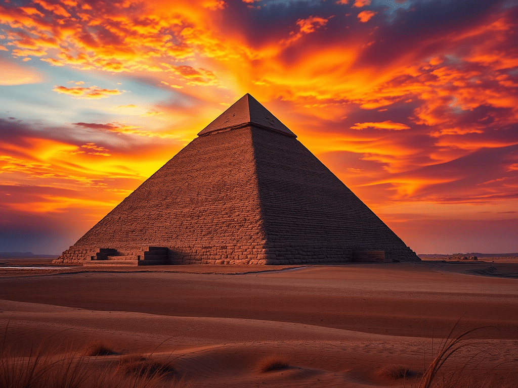 Imagine standing at the edge of the Giza Plateau, the sun sinking below the horizon, casting long shadows over a monument that has defied time itself. The Great Pyramid of Giza rises from the desert sands, a colossus of stone stretching 146 meters into the sky, its base a perfect square spanning 230 meters on each side. Constructed with an estimated 2.5 million granite and limestone blocks—each averaging 2.5 tons—it is a feat of engineering that boggles the mind. Its faces align to true north with an uncanny precision of 0.05 degrees, a mark of accuracy that rivals modern surveying tools. For over 4,500 years, this enigmatic structure has loomed as a silent sentinel, its sheer scale and meticulous craftsmanship posing questions that echo through the ages. How was it built in a mere 15 to 30 years, as some estimate, with tools no more advanced than copper chisels and human hands? Who conceived its design, and why does it continue to elude a definitive explanation? The Great Pyramid is not just a monument—it is a mystery carved in stone, a riddle that has tantalized explorers, scholars, and dreamers for millennia.